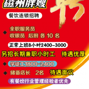 招聘职位:服务员,临时工 2400-3000